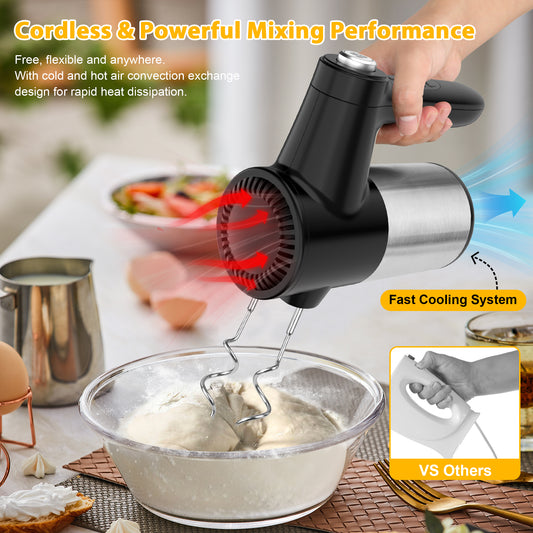 Cordless Hand Mixer, Digital Display 7 Speed Rechargeable Electric Mixer Handheld with Stainless Steel Attachments Whisks Beaters Dough Hooks & Storage Base
