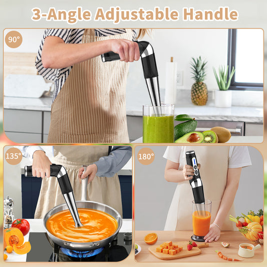 [US Stock]Cordless Immersion Blender Handheld: 3-in-1 Rechargeable Electric Hand Blender Stick, 21-Speeds & 3-Angle Adjustable